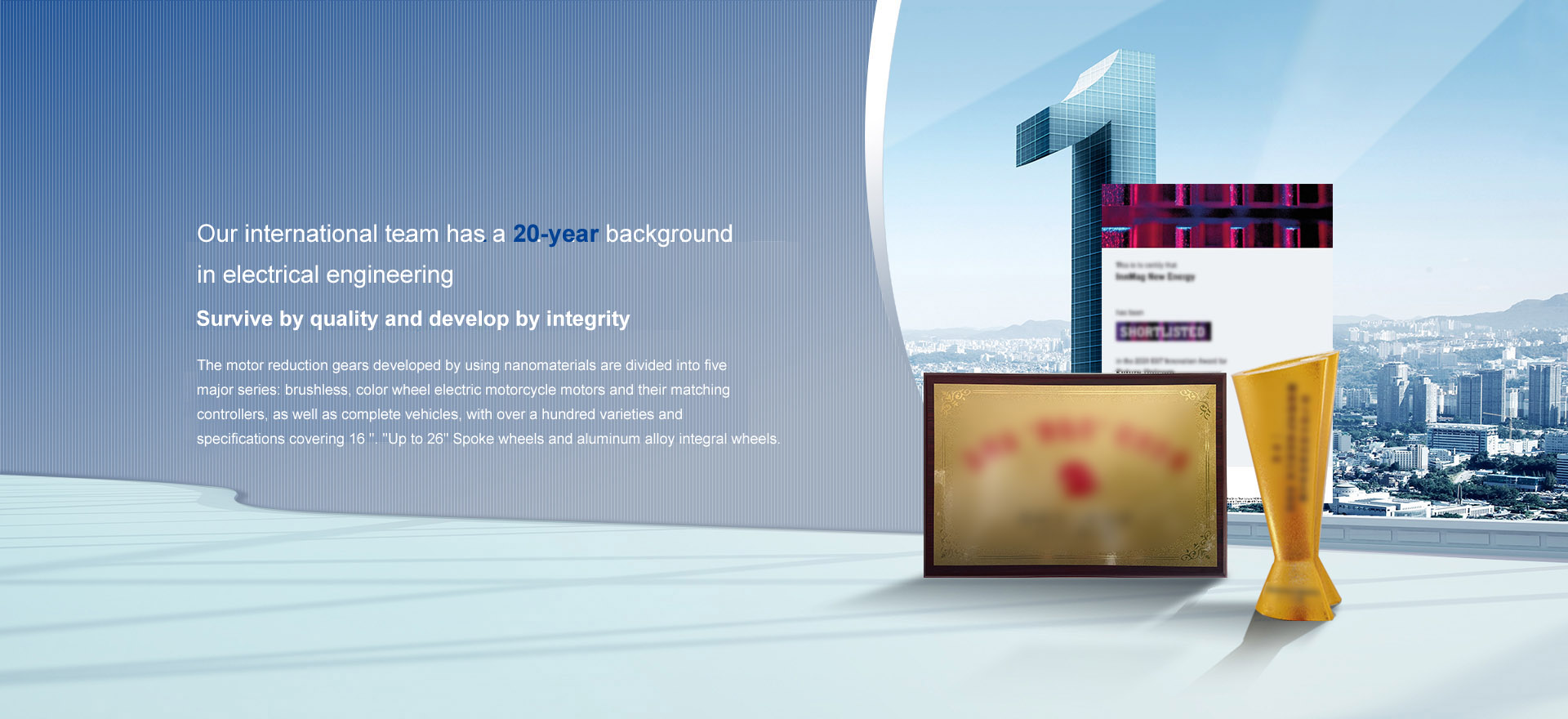 Yangzhou an chi Science, Industry and Trade Co., Ltd. is located in Pingshan Industrial Zone, Yangzhou City, a city with developed economy and beautiful scenery. It enjoys superior geographical location and convenient transportation. The company covers a total area of 12,000 square meters, with a building area of 8,000 square meters and a total asset of 25 million yuan. The company has an annual production capacity of more than 500,000 units. Its main products include 10-inch brushless geared electric motorcycle motors, 16-inch integrated motors, spoke motors, and nuclear magnetic power motors. These products come in complete specifications and models, with excellent material selection in craftsmanship, strong technical performance, and elegant appearance. The motor reduction gears developed using nanomaterials fall into five major series with hundreds of varieties and specifications, including brushless motors, colored-wheel motors, electric motorcycle motors, supporting controllers, and complete vehicles. They cover 16-inch to 26-inch spoke wheels and aluminum alloy integrated wheels.